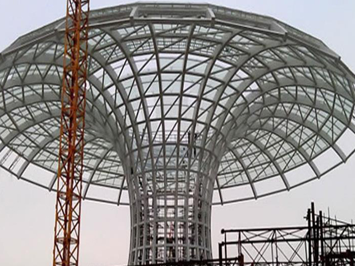 二、球形网架结构因其结构新颖,受力合理,自重轻、用钢量低等优点。如大型体育场馆球形利川螺栓球网架、公共场馆球形网架、电厂利川螺栓球网架、水泥工业球形网架、仓储物流球形网架、利川干煤棚工业球形网架、利川收费站利川加油站球形网架、展览中心、影剧院、商场、航站楼、候车厅、工厂利川车间、仓库、电视塔等球形螺栓球节点网架。国内球形网架结构主要分为:利川焊接球节点网架及螺栓球节点网架两种。螺栓球节点网架其构件工厂内加工量较大,现场安装便捷,适用于现场工期紧,利川施工条件、用电量受制约,网架形状复杂、利川杆件定位困难的异形结构。螺栓球节点球形网架系统基本由利川杆件、螺栓球、支撑支座等组成。按照节点形式可分为交叉利川桁架体系、四角锥体系、三角锥体系等。支撑方式多为固定支座支撑。对于大面积、大跨度及有特殊受力或伸缩要求的网架结构可采用橡胶支座、滑移支座、球铰支座等支撑形式,以满足结构自身的受力稳定、均衡,便于内力释放等设计要求。